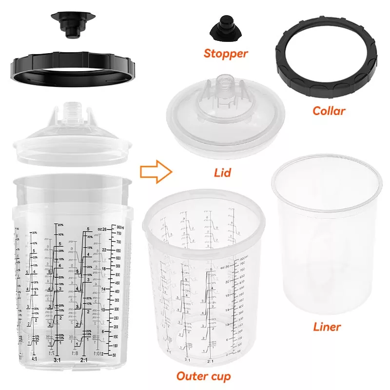 Jednorazowy pojemnik na farbę 1.0 o pojemności 800 ml mieści 850 ml farby. Jest idealny do napraw 4 paneli lub mniejszej ilości materiału, w tym dużych partii przezroczystych powłok. Seria ta została opracowana w celu poprawy wydajności pracy i jakości natrysku, aby spełnić oczekiwania każdego malarza. System jednorazowych kubków natryskowych jest doskonałą alternatywą dla kubków natryskowych wielokrotnego użytku, ponieważ sprawia, że proces natryskiwania jest czystszy i wydajniejszy. Farbę można mieszać bezpośrednio w pojemniku natryskowym, a po każdym użyciu wymagane jest jedynie minimalne czyszczenie. Jeśli chcesz sprzedać hurtowo jednorazowy pojemnik na pistolet natryskowy, skontaktuj się z nami, aby otrzymać bezpłatne próbki do testów.