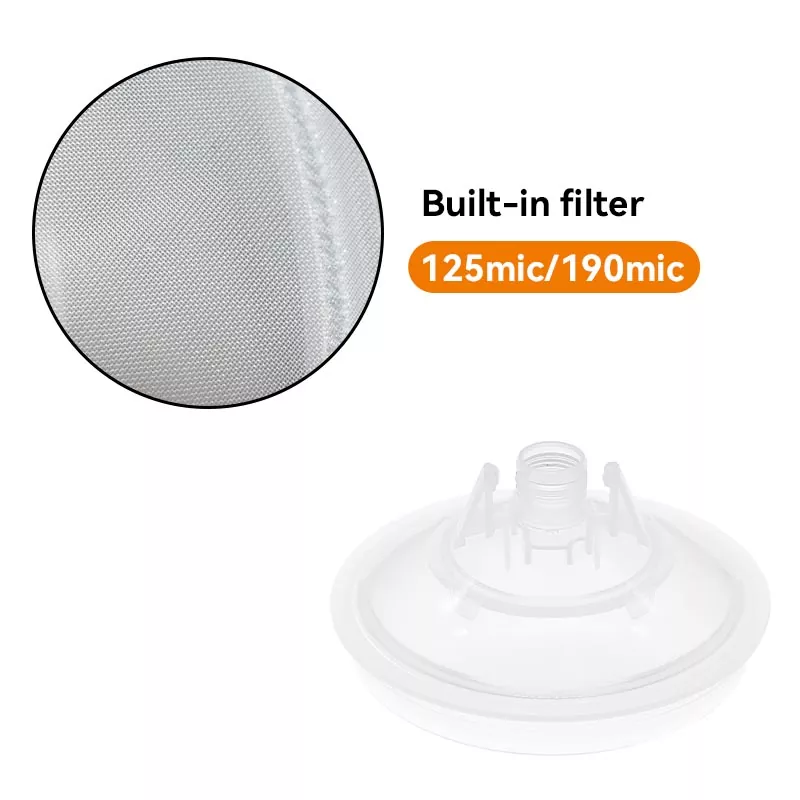 Pokrywa posiada wbudowany ultradokładny filtr 190µm lub 125µm, który filtruje zanieczyszczenia lakieru podczas natryskiwania, chroni pistolet natryskowy i poprawia jakość natrysku. Nowy zintegrowany filtr siatkowy eliminuje potrzebę zakupu i osobnego montażu filtrów i osłon, co czyni obsługę wygodniejszą i zmniejsza koszty materiałów.