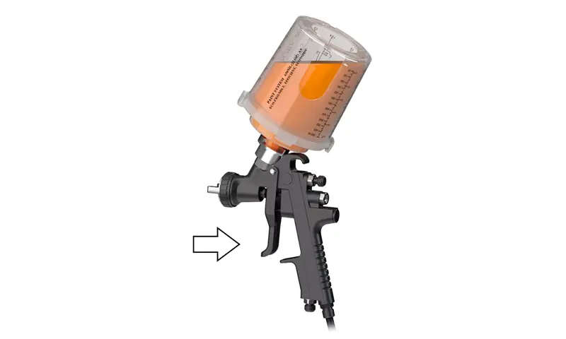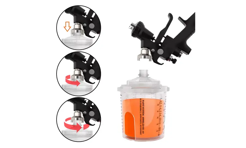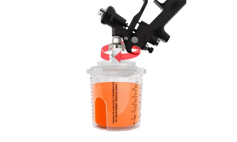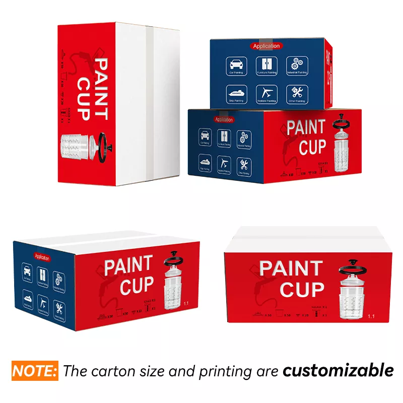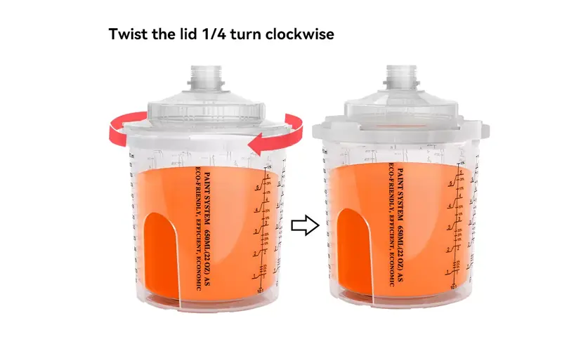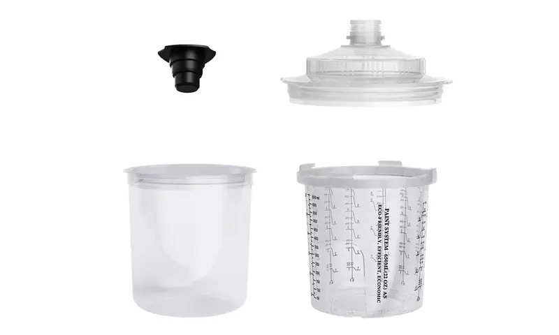 Pokrywa i kołnierz jednorazowego sprayu są dostępne w różnych kolorach, co sprawia, że kubek farby jest bardziej charakterystyczny.