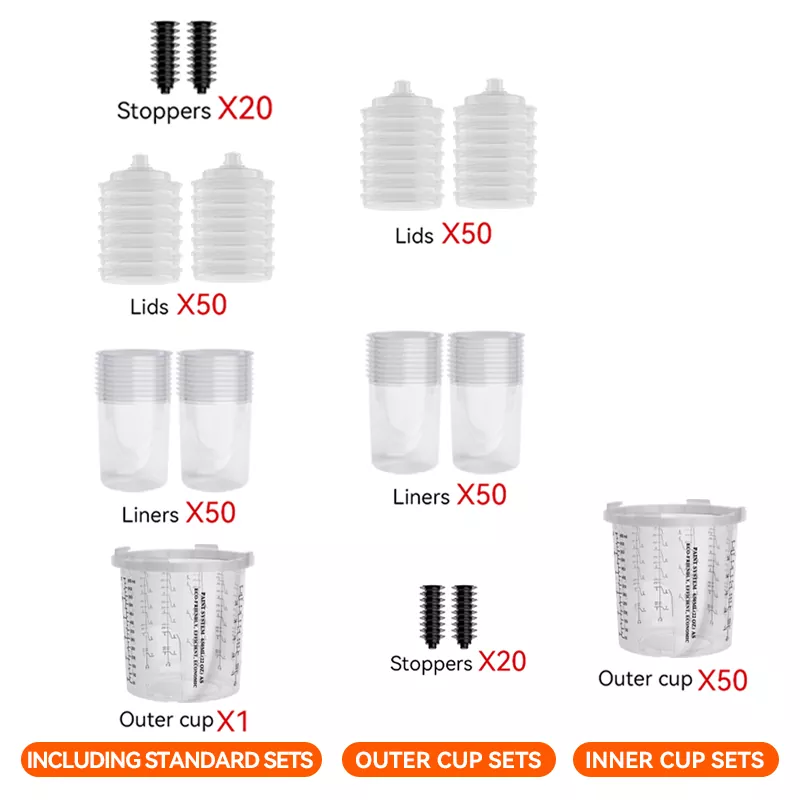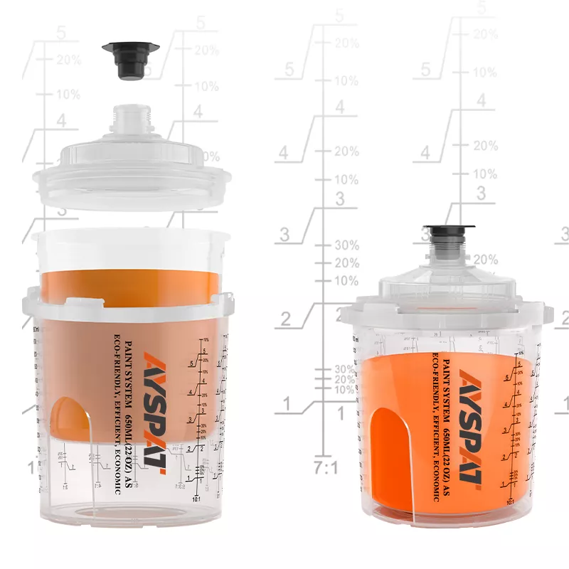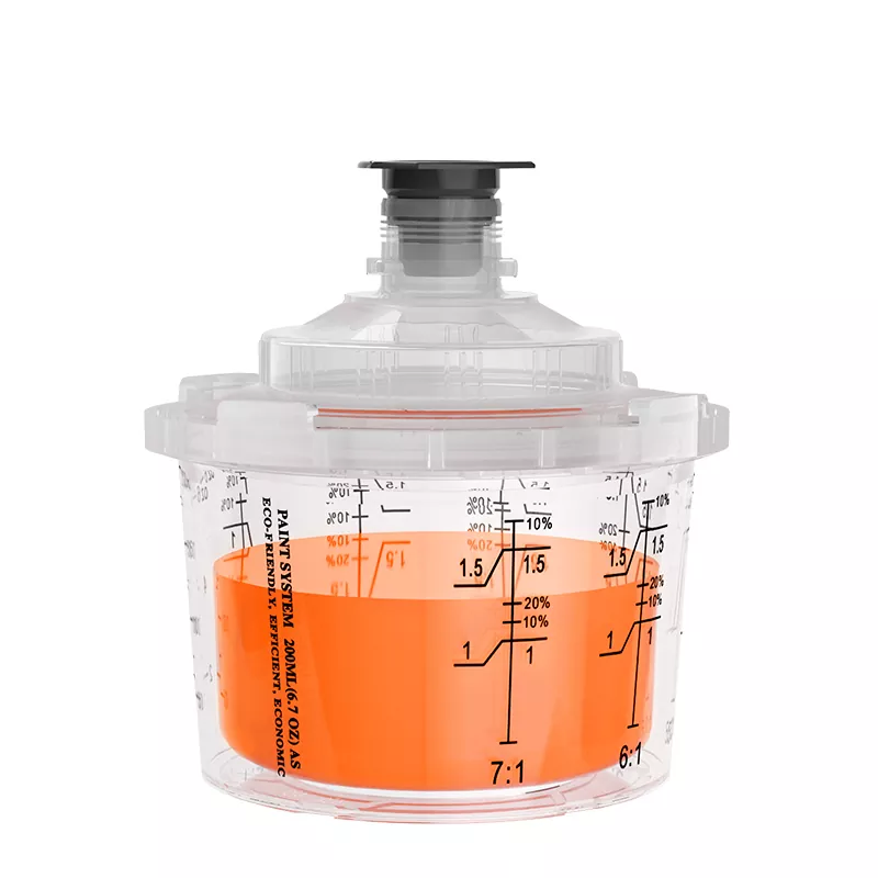 Kubek jednorazowego sprayu zapewnia różnorodne opcje pojemności (w tym 200 ml, 400 ml, 650 ml, 850 ml), które mogą zaspokoić różne potrzeby w zakresie opryskiwania z naprawy 1-panelu do naprawczych 4-paneli i zmniejszyć częstotliwość wymiany kubka.