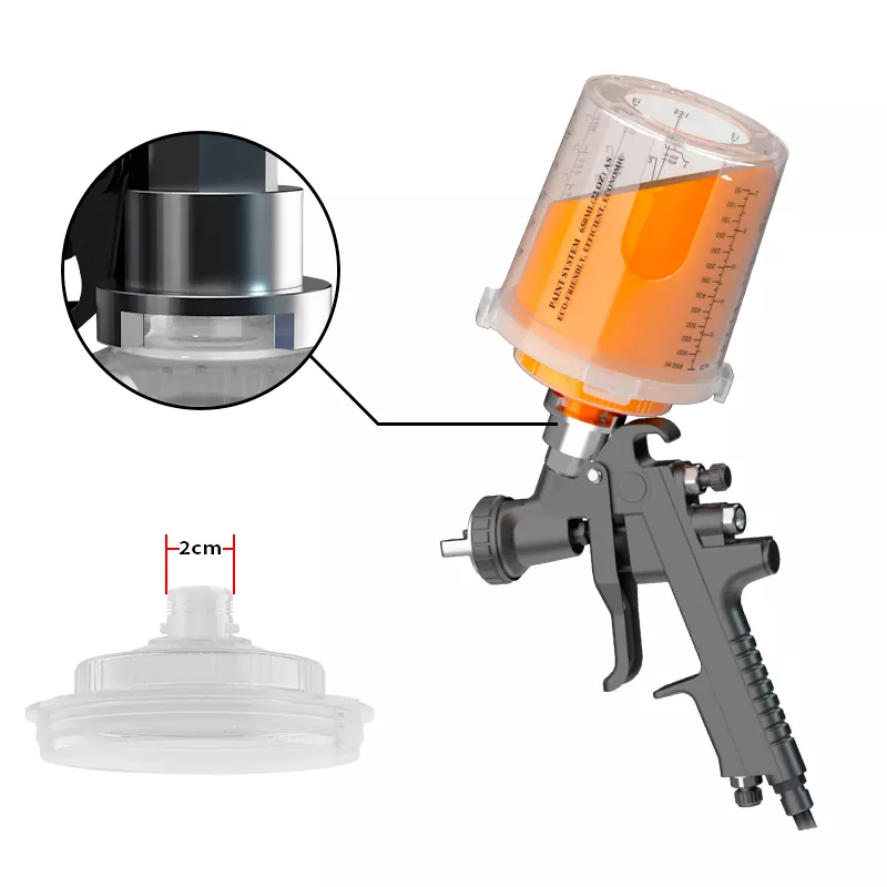 Uzyskaj specjalny adapter kubka do farby jednorazowej (Adapter serii AS3.0) Gotowy do przymocowania do pistoletu natryskowego