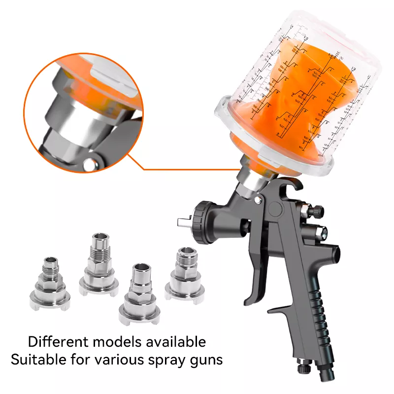 Zapewniamy adaptery dla różnych marek pistoletów natryskowych, aby zapewnić kompatybilność i stabilność kubka z pistoletem w sprayu z różnymi markami pistoletów w sprayu.